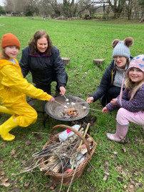 New for 2024, commencing January, we have been delighted to welcome A2E (Access 2 Education- Surrey) on a Friday morning. For 2 hours the girls have been so brave with the terrible weather, not missing a week, clad in bright all in ones with matching wellies - Miss Pink And Miss Yellow! They have enjoyed becoming comfortable in the outdoors, sensory experiences with the mud and wood, petting and grooming ponies and becoming skilled in handling them. All finished off with a campfire and ‘sm’oreos’!